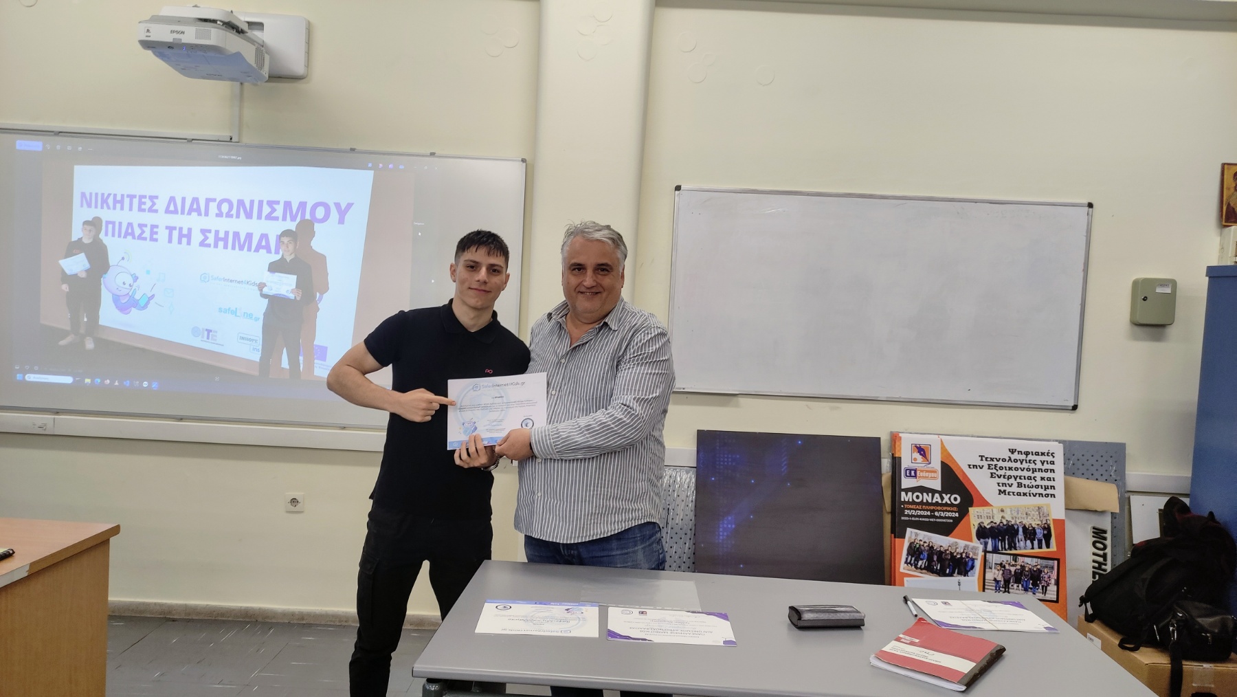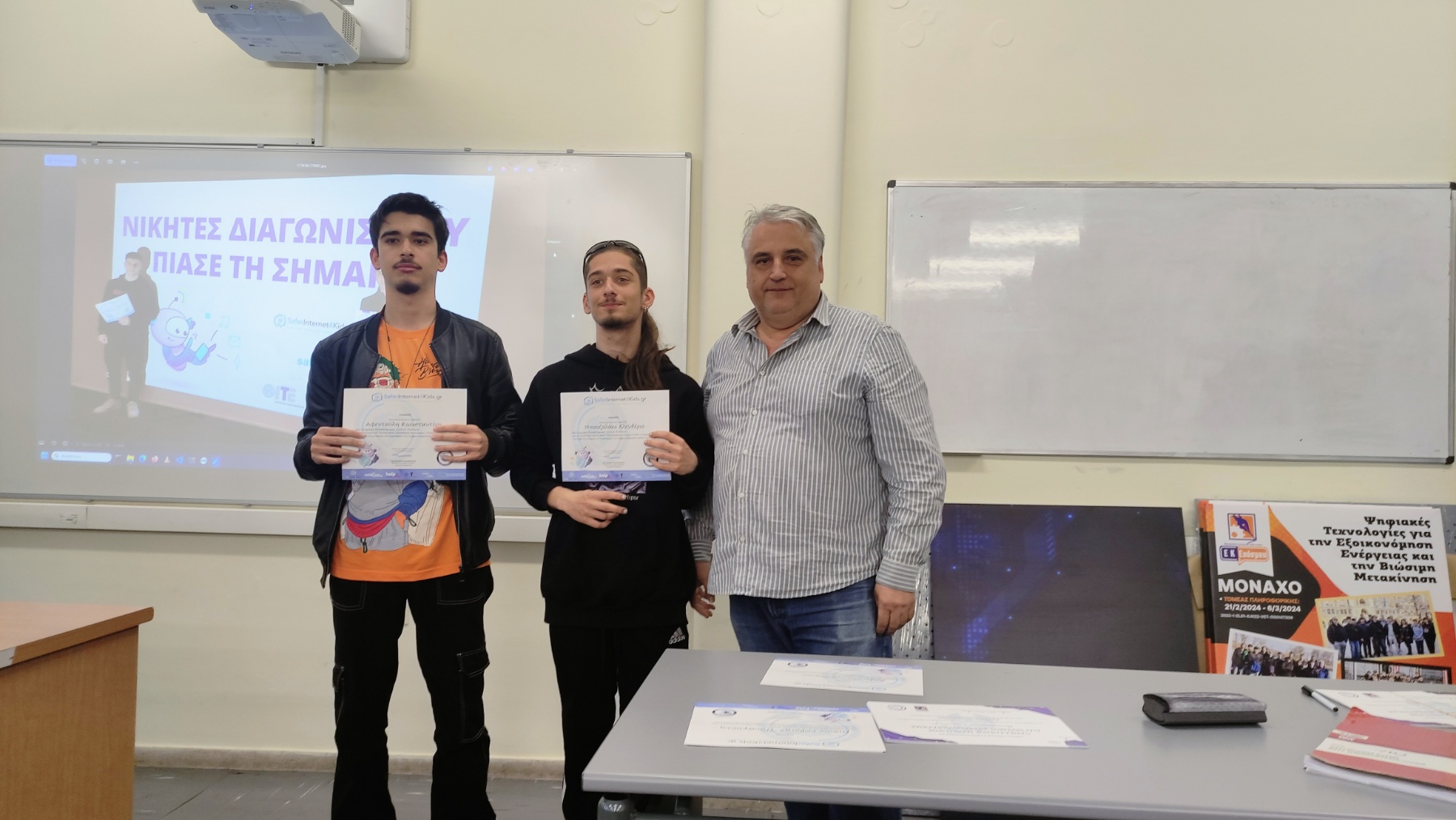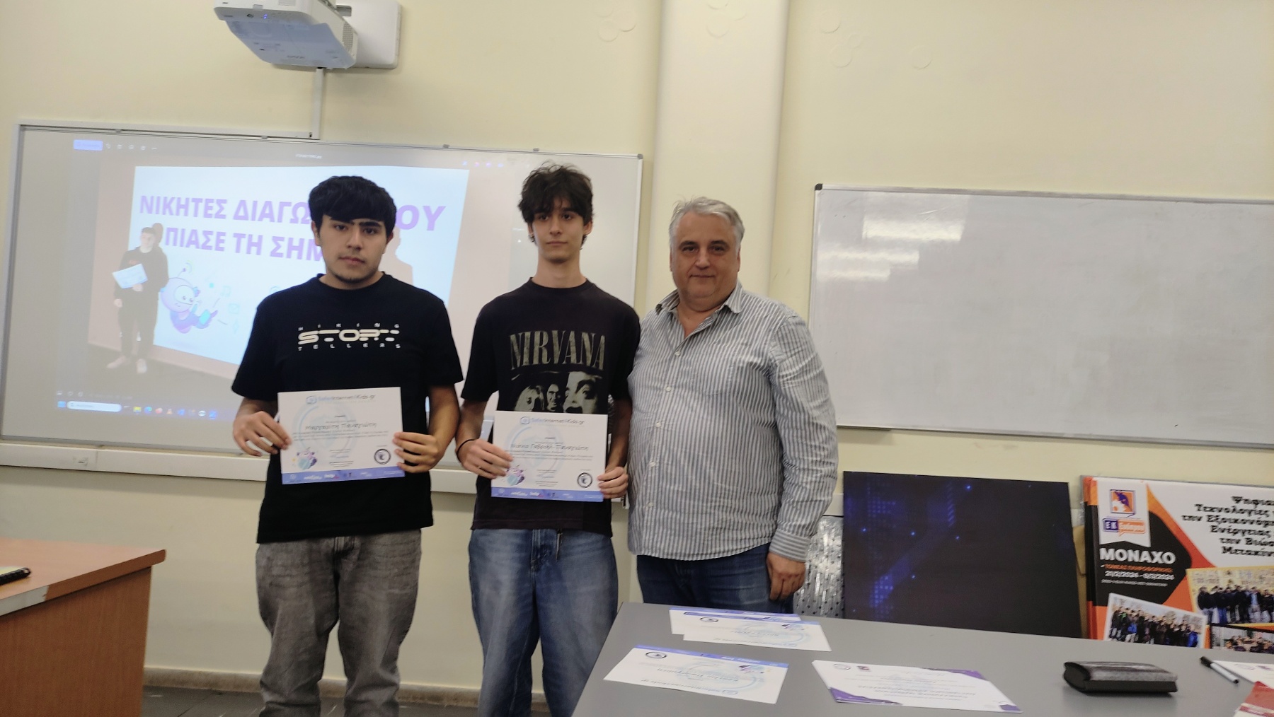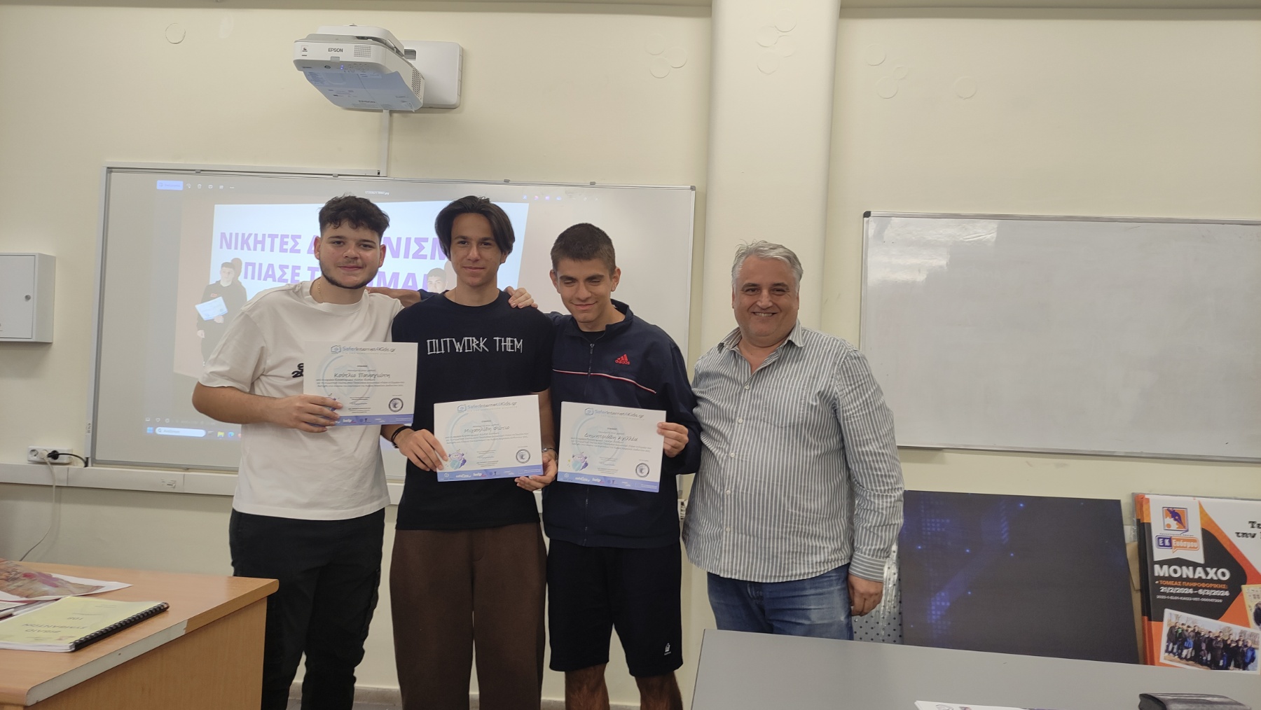 Κατά τη διάρκεια της εκδήλωσης πραγματοποιήθηκε και η απονομή βραβείων για διάκριση και συμμετοχή των μαθητών στον διαγωνισμό “Πιάσε την σημαία” στο πλαίσιο της Ασφαλούς Ημέρας Διαδικτύου 2025 και στον Πανελλήνιο Διαγωνισμό Κυβερνοασφάλειας 2025. Ήταν μια ευκαιρία να αναγνωρίσουμε την προσπάθεια, το ήθος και το ομαδικό πνεύμα που χαρακτήρισε τη φετινή Γ’ τάξη.