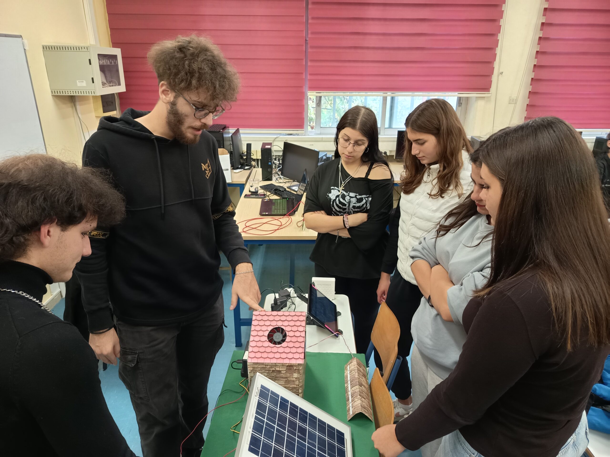 Οι απόφοιτοι μαθητές μας, φοιτητές πλέον στο τμήμα Μηχανικών Πληροφορικής και Ηλεκτρονικών Συστημάτων του Διεθνούς Πανεπιστημίου Ελλάδας, επισκέφθηκαν το σχολείο για να κάνουν επίδειξη χρήσης του AutoSolar System και να εξηγήσουν τις τεχνολογίες που εφάρμοσαν για την κατασκευή του στους μαθητές της Γ’ τάξης από την ειδικότητα «Τεχνικός εφαρμογής λογισμικού»