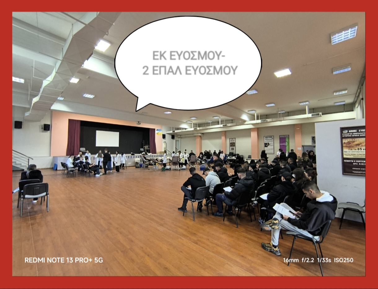 Τα σχόλια είναι απενεργοποιημέναΤην Παρασκευή 12 Δεκεμβρίου 2025 πραγματοποιήθηκε με επιτυχία η εθελοντική αιμοδοσία που διοργάνωσαν το Ε.Κ Ευόσμου και το 2ο ΕΠΑΛ Ευόσμου , ως πράξη ουσιαστικής…